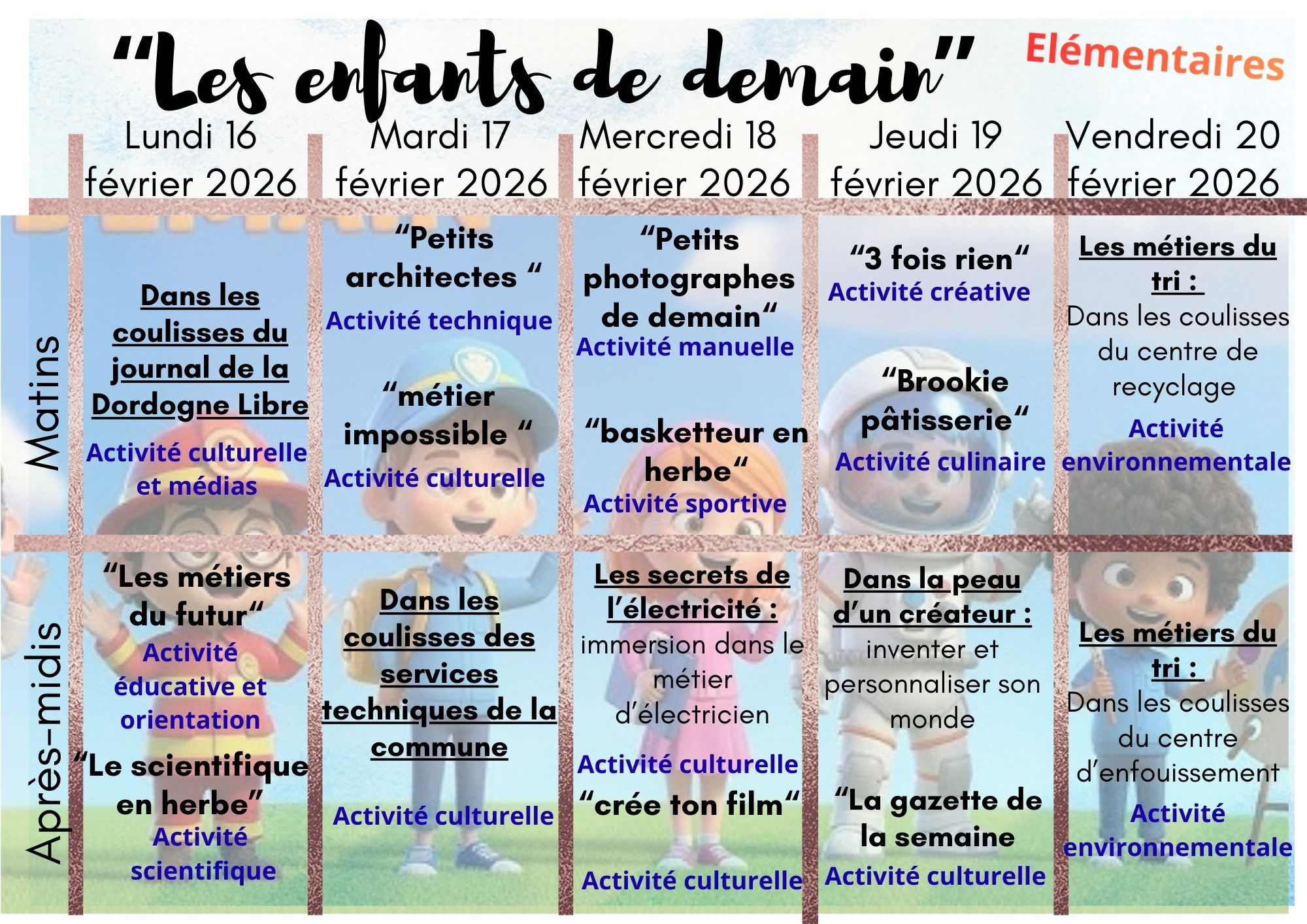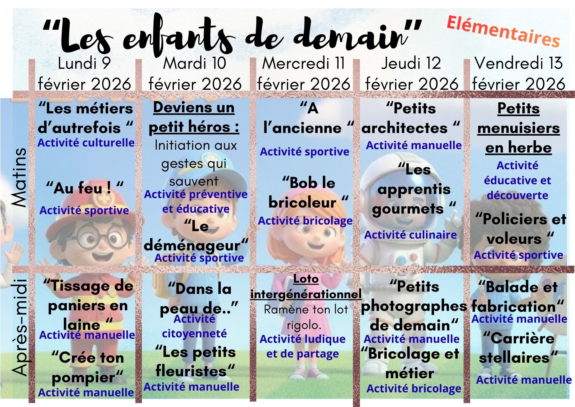 Programme d'animation des élémentaires