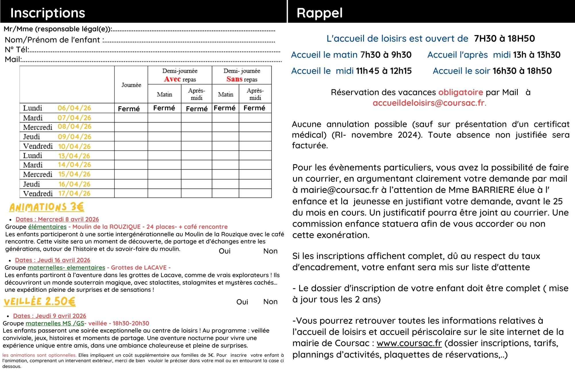 Mail : accueildeloisirs@coursac.fr